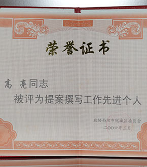 2003年2月先后當選南陽市第三屆、第四屆、第五屆政協委員